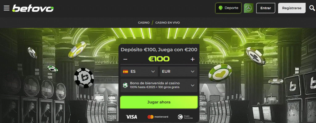 Betovo Casino es una plataforma moderna de entretenimiento en línea que reúne una amplia selección de tragamonedas, juegos de mesa y una completa sección de casino en vivo con crupieres profesionales. Además de su catálogo de juegos, ofrece un robusto apartado de apuestas deportivas, pensado para quienes desean una experiencia integral que combine casino y deportes en un mismo lugar.