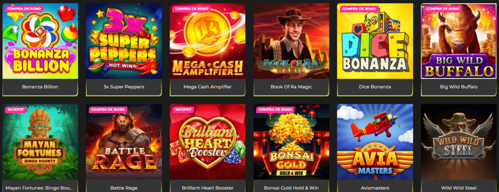 - Gran catálogo de juegos con miles de títulos y más de 100 proveedores