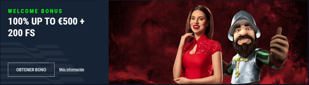 | Welcome Bonus | 100% hasta €500 + 200 Free Spins |