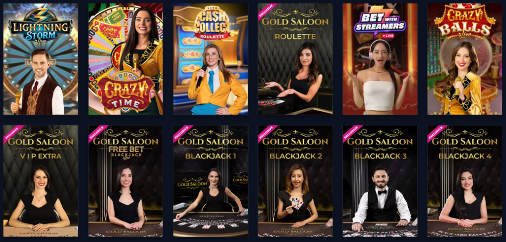 - Ruleta en Vivo: Gold Saloon Roulette, Live Cash Collect Roulette.