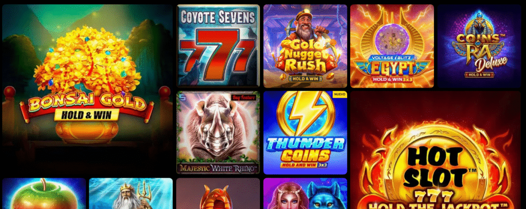 Las tragamonedas de Palm Slots Casino representan la parte más amplia del catálogo, reuniendo miles de títulos de proveedores reconocidos y con temáticas muy variadas. Aquí se pueden encontrar slots clásicas, de vídeo, Megaways y juegos con la mecánica Hold & Win, muy popular entre los jugadores. La mayoría de estas tragamonedas ofrecen un RTP que oscila entre el 95 % y el 97 %, dependiendo del proveedor y del modelo de juego, lo que se ajusta a los estándares actuales del sector.